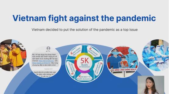 选手们在“激情演讲”环节畅谈全球公共卫生治理。来自俄罗斯的塔蒂亚娜主要关注新冠疫情治理中的全球合作和未来发展方向,她指出,全球合作治理疫情可以有“新组织”和“新方向”两个维度,其中还特别提到了中国在“一带一路”、上海合作组织(SCO)、亚洲卫生专业组织(AHPO)等机制中的作用。来自巴西的迪米特里亚说:“我希望青年的声音能够被听到,可以建立青年论坛、打造青年社区,还可以多多开展数字化活动。”来自越南的阿里安娜则围绕“团结”与“合作”两个关键词,从本国疫情防控经验出发,结合目前东盟等组织和机制的活动,希望各国政府、国际组织、企业以及个人能够形成抗疫合力。