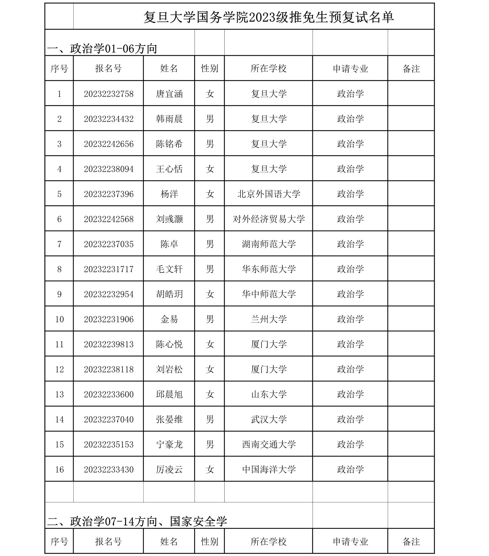 复旦大学bet365体育 2023级推免生预复试名单.pdf
