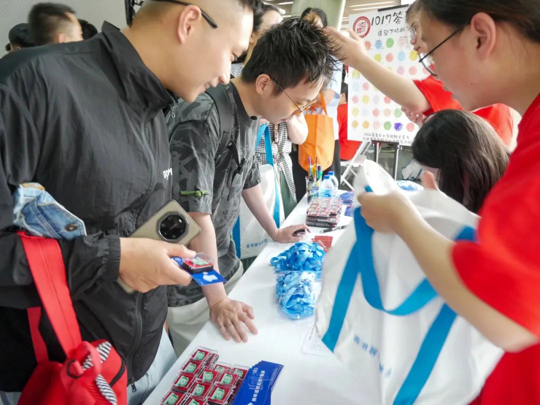 清晨,院友们陆续来到正大体育馆,在工作人员的带领下携家属前往签到台,领取文化衫、手环等纪念品。十载春秋倏忽过,依依惜别再重逢。十年后再相逢,14届院友们兴致勃勃地与昔日同窗寒暄、合影留念,共庆复旦人的节日。