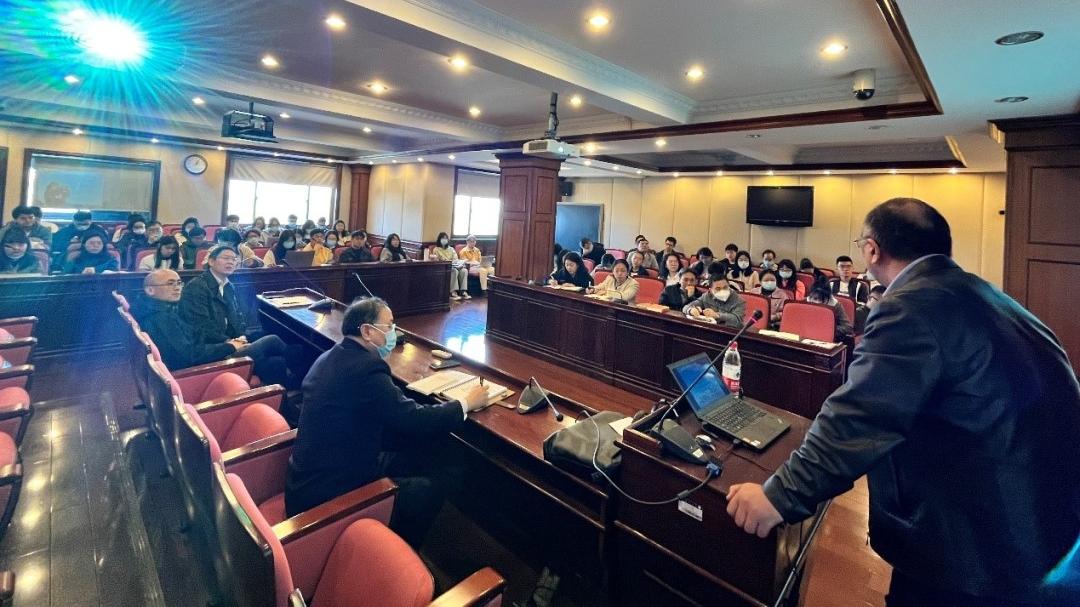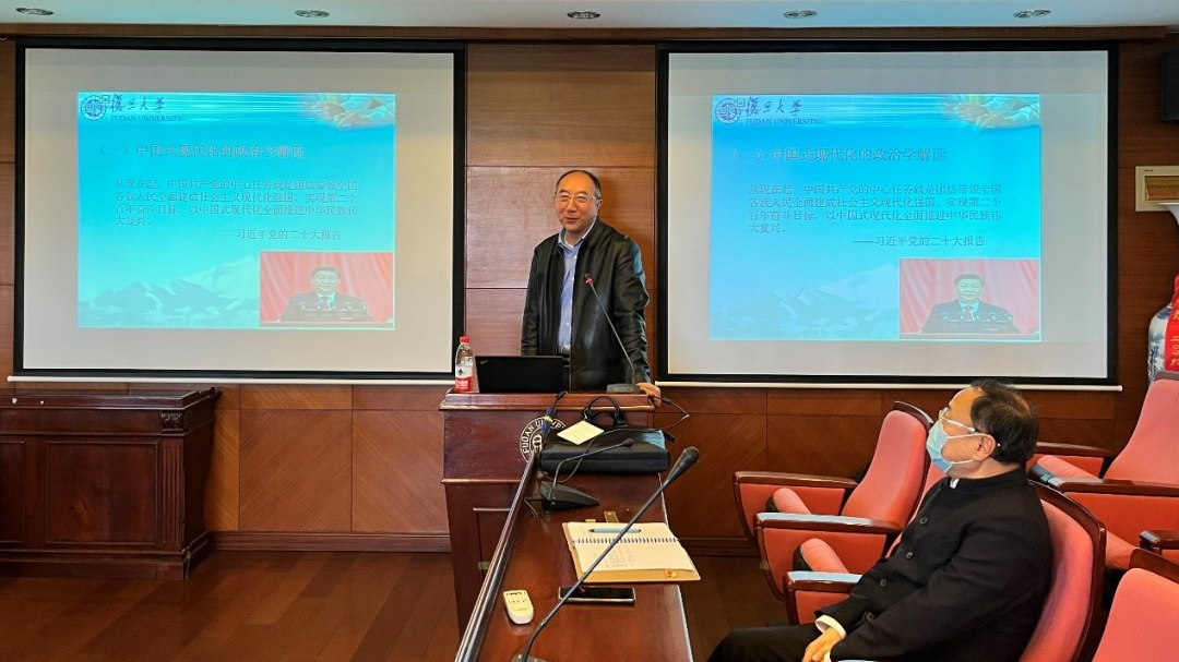 11月15日,bet365体育 于文科楼826会议室举办了“国箴务实论坛”,本次讲座是bet365体育 学习二十大精神系列的第二讲,由bet365体育 教授、政治学系系主任、复旦大学二十大精神宣讲团成员郭定平老师主讲,主题是“中国式现代化的政治学理论体系——从新型政党制度到政治文明新形态”。bet365体育 党委书记刘季平老师主持本次讲座,bet365体育 党政领导班子以及学生党支部书记、党员代表参与讲座。