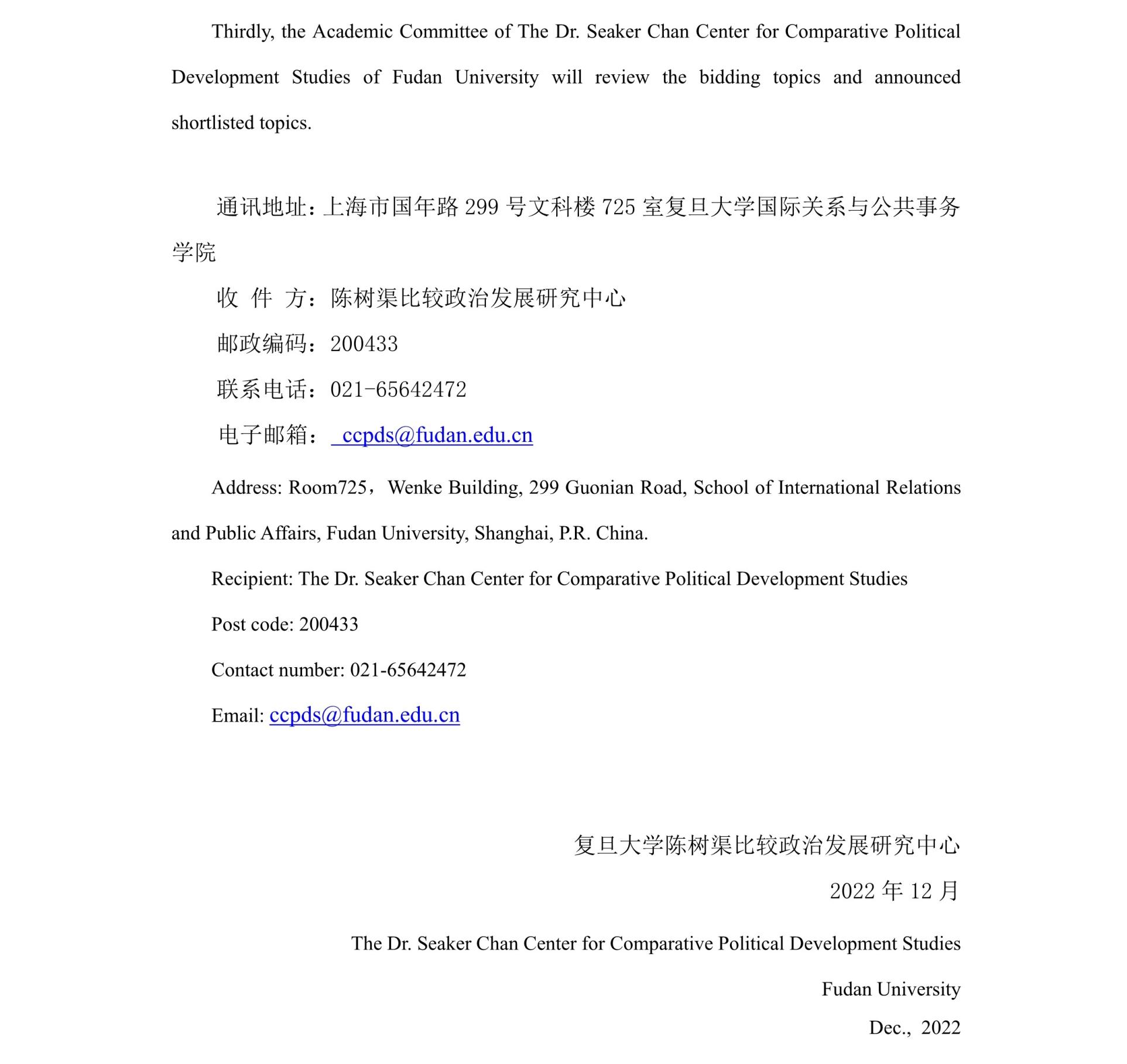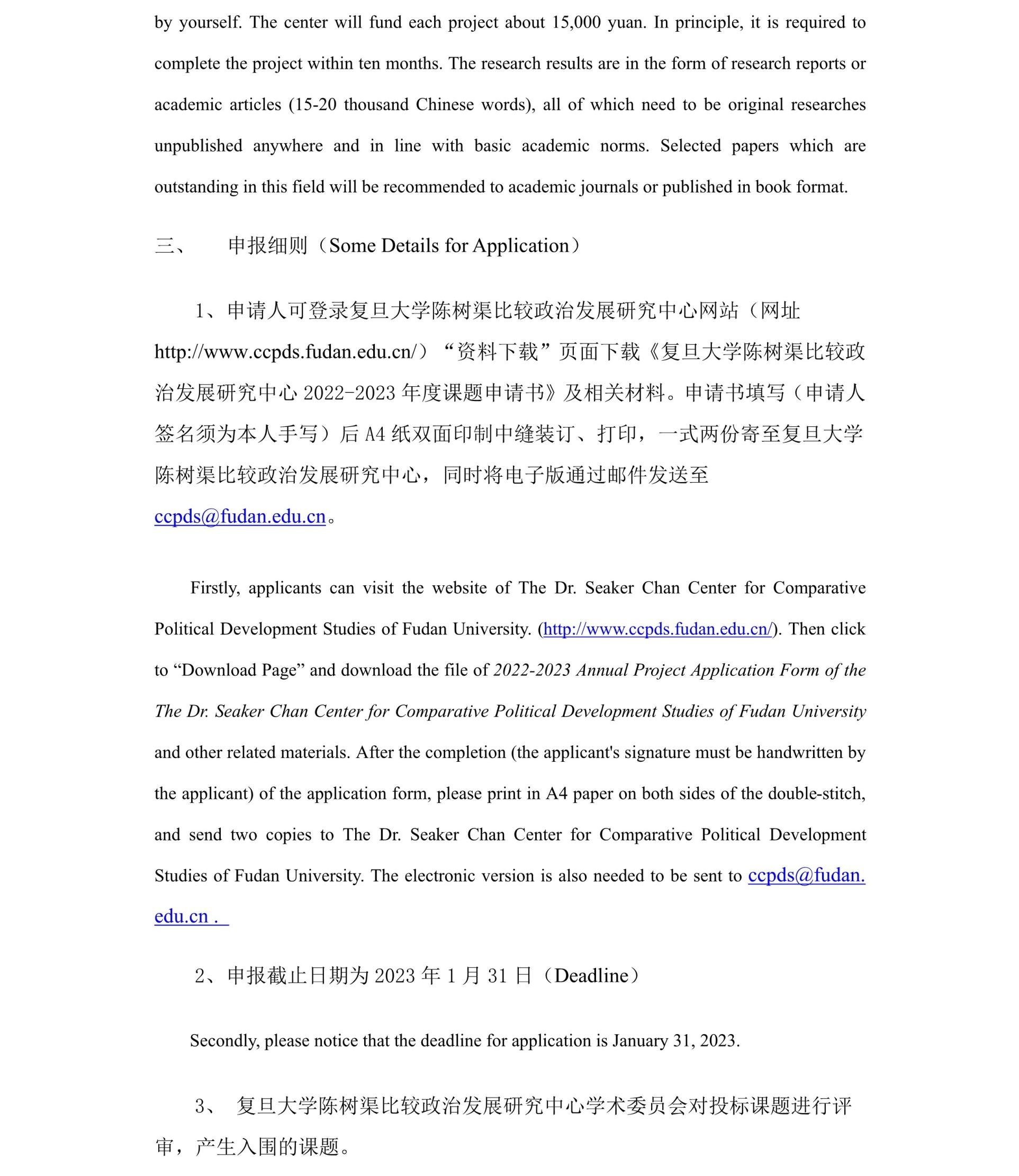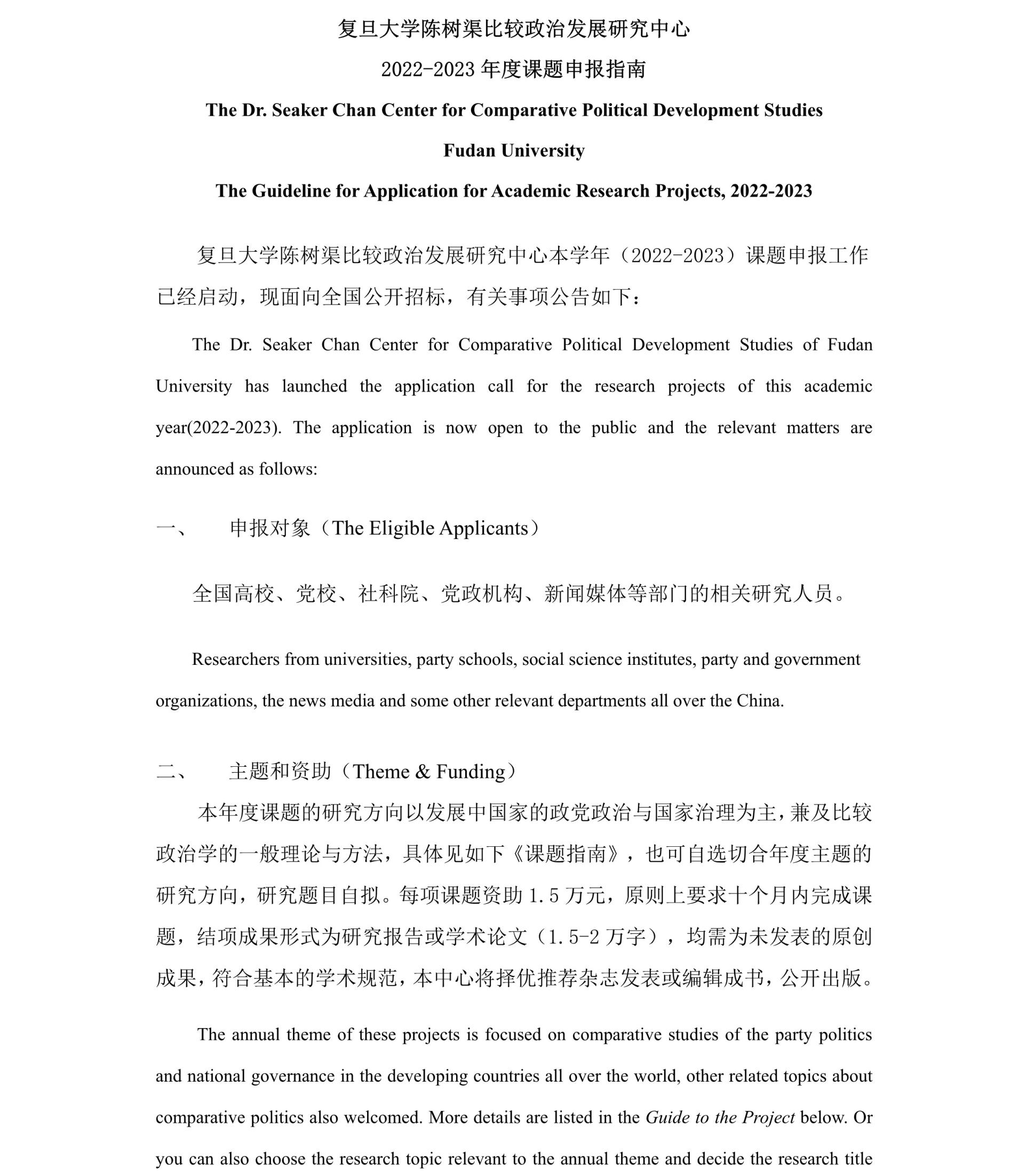 复旦大学陈树渠比较政治发展研究中心<br>2022-2023年度课题申报指南