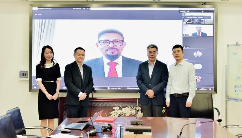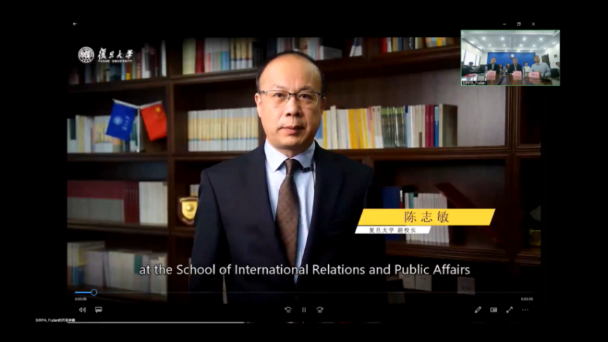 随后,在视频致辞中,陈志敏副校长代表复旦大学欢迎奥克贝博士加入复旦大家庭。他深情回顾五年前,奥克贝博士千里迢迢赴上海论坛,发表主旨演讲,丰富的经验与学识令人印象深刻。他表示很高兴能与奥克贝博士建立持久关系。他指出,复旦肩负崇高使命,不仅引领中国进步创新,也力求为提升全人类福祉做贡献。他希望同仁与奥克贝博士精诚合作,拓宽在非洲与全球的研究网络。
