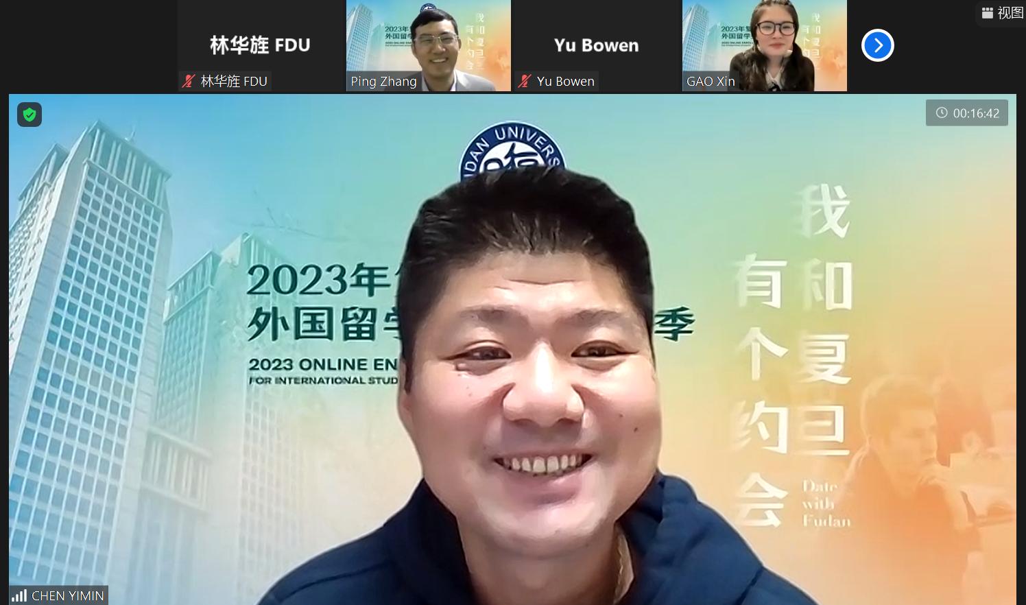 张平副教授面向全球直播参与者进行了关于复旦大学和bet365体育 的介绍,强调bet365体育 丰富的国际合作项目、完善的全英文授课学位项目体系以及多彩的学生活动,并向留学生们选择复旦、报考bet365体育 表示欢迎。