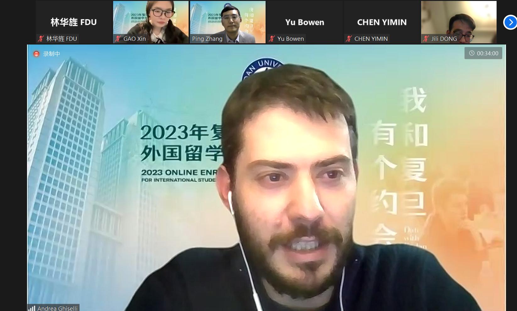 李安风(Andrea Ghiselli,意大利籍)青年副研究员补充介绍了选择上海市和复旦大学就读的优势,并结合自身体会向大家展现了国际政治英文博士项目的价值与魅力。同时,李安风特别指出学院定期举办的学术工作坊对留学生的学术成长大有助益,并欢迎大家积极申请。