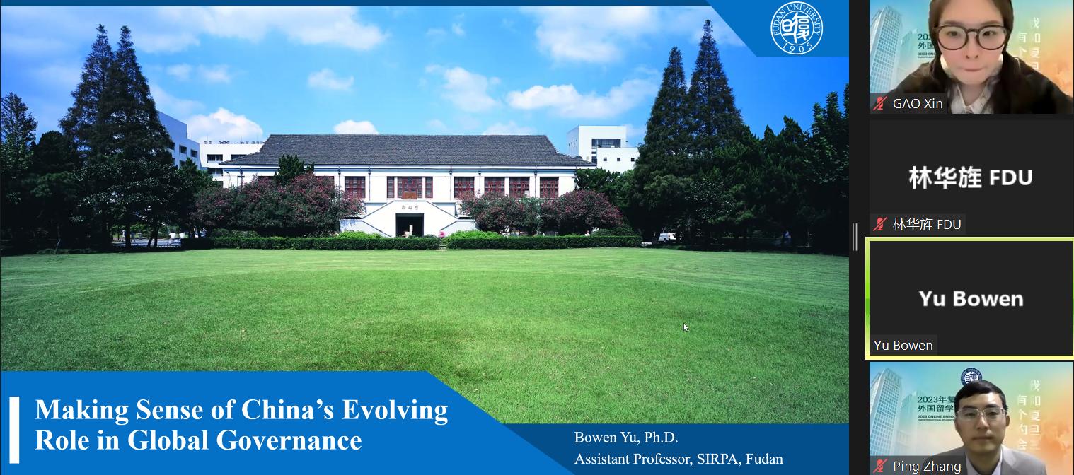 在全面地介绍了bet365体育 全英文授课学位项目后,余博闻青年副研究员带来了题为Making Sense of China's Evolving Role in Global Governance的微讲座。余博闻从什么是全球治理引入,介绍了全球治理的三大支柱,进而分析优化全球治理的目标和障碍,强调需要破旧立新,构建人类命运共同体,实现真正的多边主义。在此基础上,余博闻通过案例的形式,以小见大地呈现了中国在全球发展中的新角色。最后他指出,中国是全球治理的贡献者和改革者,在建立新的话语体系、新的制度方面表现出了强大的领导力,需要和其他国家一起让全球治理变得更加公平、更有效率。
