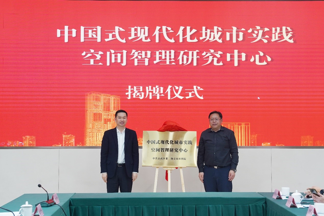 玄武区区委书记闵一峰与南京社科院院长曹劲松为研究中心揭牌