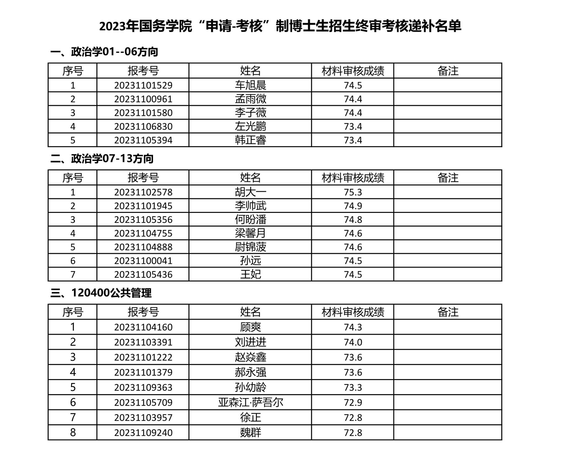 2023年bet365体育 “申请-考核”制博士生招生终审考核递补名单