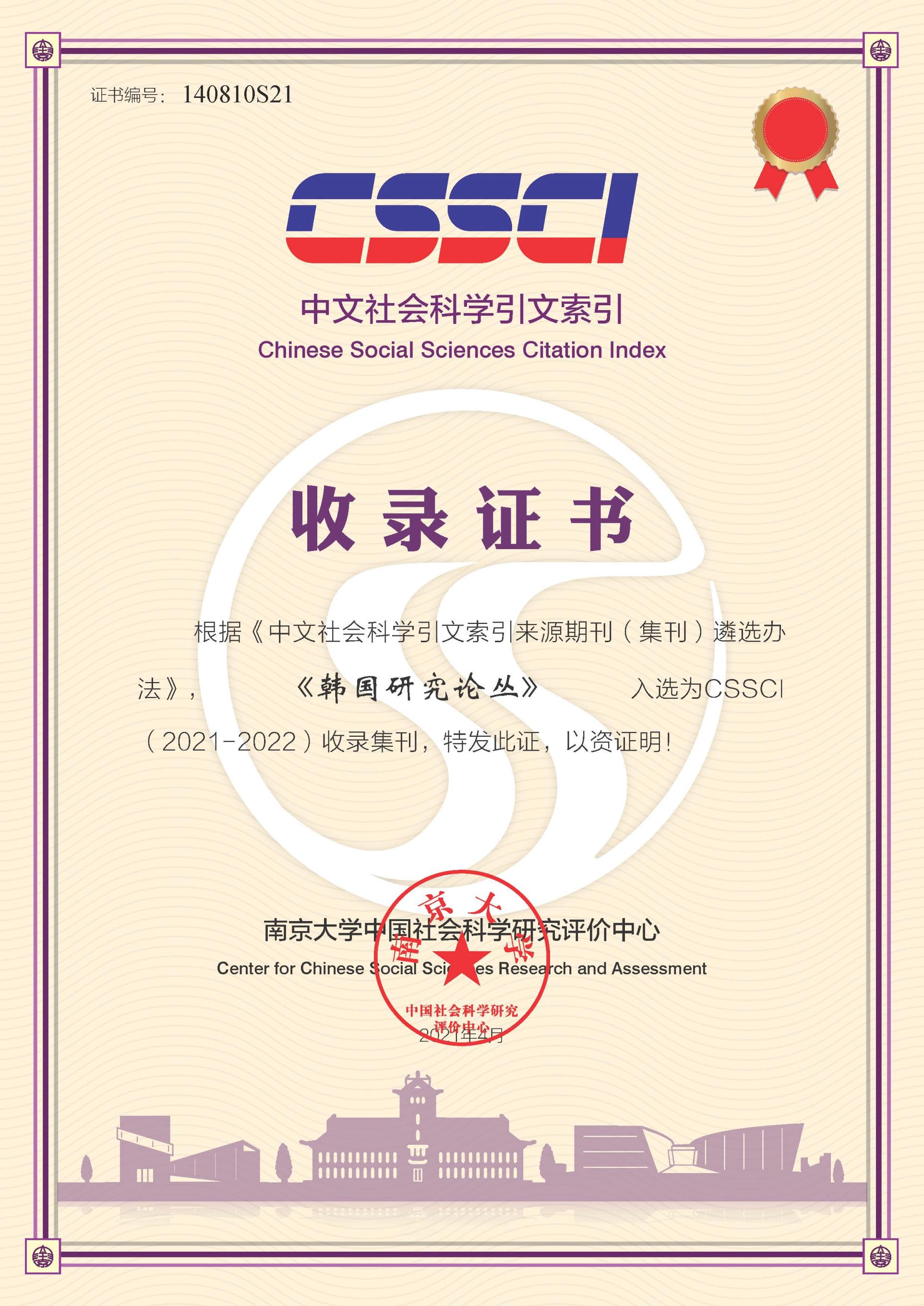 CSSCI来源期刊(集刊)遵循文献计量学规律,采取定量与定性相结合的方法从全国2700余种中文人文社会科学学术性期刊(集刊)中精选出学术性强、编辑规范的期刊(集刊)作为来源期刊(集刊),是与国际接轨并通行的用于衡量人文社会科学理论学术期刊(集刊)学术水准的科学、客观、公正、公平的高位指标体系。