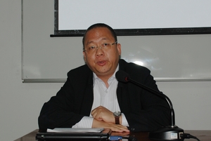 首先社科部顾钰民教授作了题为《中国共产党成立90周年与马克思主义中国化》的党史报告。顾老师指出我们应当科学地、可观地、正确地认识和评价党成立至今90年的历史,这是进一步加强党的建设的基本前提。他认为中国共产党成立至今作出了三次历史性的重大选择,第一次是必须建立社会主义制度的制度选择(1921-1949),目的是解决民族独立和人民解放;第二次是建立中国特色社会主义道路的道路选择(1949-1978),为的是解决国家富强和人民富裕;第三次是科学发展模式的发展观的选择(1978年至今),从经济大国转变为经济强国,综合竞争力不断提高。这三次历史性的选择使中国社会发生了巨大的变化,是中国共产党为中华民族作出的最大的贡献。与此相对应地形成了中国化马克思主义的三大理论成果,分别是毛泽东思想、邓小平理论和“三个代表”重要思想、科学发展观。中国共产党90年的历程是马克思主义基本原理同中国实际相结合的过程,理论随着实践不断丰富和发展。顾老师最后强调只有科学客观地认识党的90年的历史,才能面对新时期、新任务和新要求,更好地加强党的建设,从而真正实现民族的复兴。
