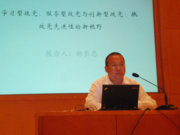 郑长忠副教授首先向大家提出四个问题:1.“建设学习型、服务型、创新型的马克思主义执政党”的提法,是文字游戏还是别有深意? 2. “建设学习型、服务型、创新型的马克思主义执政党”的提出,是应景之举还是政党发展自身逻辑发展结果? 3. “建设学习型、服务型、创新型的马克思主义执政党”的具体内涵,是有相对确切内容还是可以有较大解释空间? 4. “建设学习型、服务型、创新型的马克思主义执政党”,是具体要求还是先进性规定?