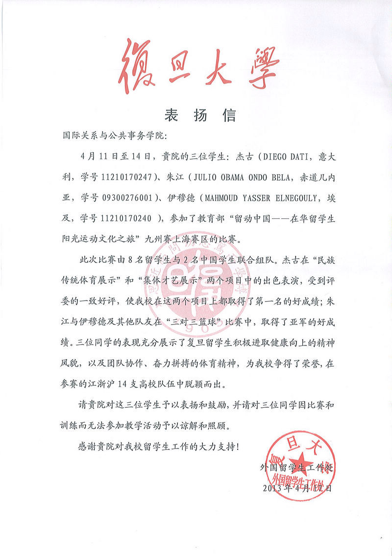 bet365体育 三名留学生参与教育部文娱活动受表彰