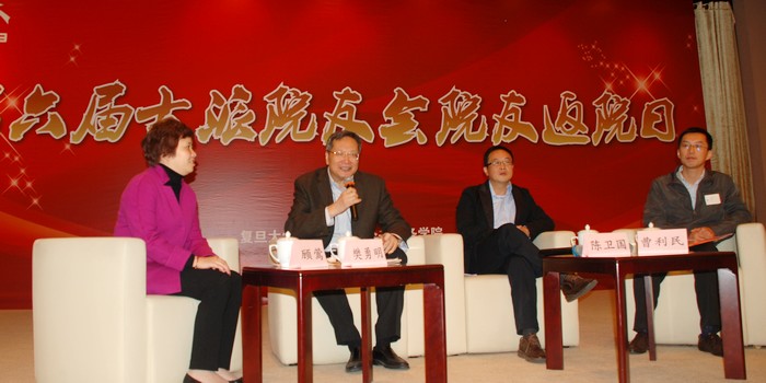 论坛的最后一部分,邀请了三位代表不同行业的值年院友,分别是1973级国际政治系院友,入校40周年代表,复旦大学国际政治系樊勇明教授、1983级国际政治系院友,金桥集团副总经理陈卫国、2005级公共管理硕士曹利民分别就“全球治理中的金砖国家”、“临港新城开发与自贸区建设”、“公务员职业生涯规划与实施”三个议题分享自己的观点与经验。