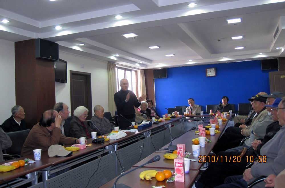 发布时间:2010-11-26 (1)2010年11月20日上午,复旦大学文科楼725会议室内充满了欢声笑语。长桌的一头摆放着一个香气四溢、色彩缤纷的花篮。花篮里插着各是9枚的百合花、郁金香、蝴蝶兰等花卉,寄寓吉祥美好。红缎带上写着贺词。bet365体育 领导、国政系老领导、老教师和1965级院友欢聚一堂,庆贺国政系首届毕业生进校50周年暨余开祥教授90华诞。握手、问好、酬联、赠书、座谈、放歌、献花、留影,一组组场景洋溢着浓浓师生情。图为bet365体育 党委书记沈兰芳研究员(左2)、bet365体育 常务副院长、博导林尚立教授(左3)、盛善珠(副研究员,国政系原总支书记,后任上海大学党委副书记)(右1)、潘玲娣(副研究员,国政系原总支书记)(右2)。 (2)1965级院友代表李元茂(副教授、复旦大学分校原党委副书记)(左1)和张金芳(副教授、复旦大学分校原副院长)(右2)向bet365体育 领导林尚立(右1)敬赠对联“研修国际政治堪称南天一柱,培养时代精英亦为红色摇篮”(1965级院友:文汇报资深记者何玉林撰联,山东大学党委原副书记徐广生书写)。 (3)听了几位弟子的肺腑之言,国政系老副系主任余开祥教授(右1)感慨地说:“回忆国政系50年历程,师生共同努力,艰苦奋斗。有一个同志,我们要牢记:老系主任吴常铭,他为人谦虚,常对我说,‘我是不懂的,业务上要靠你。’我对吴常铭同志很敬重,凡是他讲课,我都去听。他讲得比我好多了。”他又说:“我今年89岁,有信心活到120岁。健康长寿需要:心态平衡,不要与人比高低;经常散步,不要坐着不动;自编一套健身动作锻炼;老有所乐,我爱好京戏和西洋古典音乐;老有所思,到一个地方,我便去书店,买几本好书。” (4)国政系原主任王邦佐教授(左1)在聚会上说,余老师是我的恩师。今天想来,做国政系预备教师对我的人生发展至关重要。当时系领导在政治上、业务上对我们要求很严格。老余的精神境界很高,在文革中遭人毒打,但他一点也不记仇,仍然“以德报怨”。 (5)原国政系教师徐豫龙一直很敬仰恩师余开祥。他说,我们始终要向余老师学习。过去几十年,余老师为人处世、教学科研都是我们的楷模。现在也要向他学习。他要活到120岁。我们要学习他的长寿之道。 从左至右:徐豫龙(教授,原国政系教师,曾任华东师大党委书记)、朱元寅(bet365体育 教授)、刘星汉(教授,国政系原主任)、刘宏谊(教授,原国政系教师,后任世经系副主任)、童彭庆(bet365体育 教授)、王邦佐(教授,原国政系主任,后任上海师大校长) (6)国政系老领导、老教师合影: 第一排:(左)余开祥(教授,国政系原副主任、世经所所长)、(右)陈俊翕(教授,原国政系教师,余开祥教授夫人) 第二排:(从左至右)祝启秀(bet365体育 副教授)、王国明(教授,国政系原主任)、郑维淑(国政系原总支副书记)、李冰(副教授,原国政系教师)、盛善珠、刘宏谊 (7)在聚会上。胡绿漪(右2),副教授,原国政系教师,后任上海市教卫党委副书记,1993年任上海市第十届人大常委会常委、华侨民族宗教委员会主任。 (8)1965级院友桂悦仁(中共上海市委组织部组织人事报前总编、上海市欧美同学会常务理事、东欧分会会长)是系里提前毕业首个走向“国际”的毕业生,担任赴捷克留学生政治辅导员。师恩难忘,他挥毫书写了“德艺双馨”四个秀丽飘逸的大字祝贺余开祥老师90大寿。他深情地说,那时师生亲密无间,团结一致,是一个战壕里的战友。老余是老革命、系领导,却平易近人,毫无架子,同学们都直呼他“老余”。 (9)1965级院友邹根宝(教授、世经所原副所长)动情地说:“我对老余常怀感恩之心,不论在国政系还是在世经所。老余是为世经所建设和发展呕心沥血的掌门人。他在战后国际关系、世界经济和国际政治等研究领域被校内同行赞为“帅才”。他在文革中受到冲击,却以大局为重,不计个人荣辱。‘解放’后,他把补发工资1000元交了党费。” (10)居住在广州的1965级院友曾云玉(左1)听说母校举办活动,便乘火车匆匆赶来。她站起来激动地说:“不请也要来!国政系不仅是学知识的课堂,而且是团结友爱的集体、温馨的大家庭。”她牢记“要做有用的人才”的教导,工作兢兢业业,任劳任怨,多次被评为优秀共产党员和先进工作者。最后她放声演唱了一首粤语康健延寿歌,献给老寿星余开祥老师。 右1和右2分别为1965级院友胡巾雄、谈仪珍。 (11)国政系1965级院友徐志新(右1)(副研究员,国政系原副主任、总支副书记,后任复旦附中校长)和余老师合影。他对余老师很敬佩,十分感谢他的培育之恩。 (12)国政系1965级院友在聚会上。自左至右:第一排金志香、陈生祥、胡庆康、姜励;第二排夏乾丰、石礼文。 (13)欧阳靖(左1)虽是国政系1969级毕业生,闻讯也赶来参加聚会,深深感恩余主任。他说,1965,1985,1988,余开祥主任有过对我十分重要的3次谈话,永难忘怀。这位真正的仁者,在我生命中留下痕迹。余主任具有严格的专业精神,深厚的人文关怀,巨大的理论勇气,对社会、对人民、对历史的责任感,值得我们学习一辈子。 |