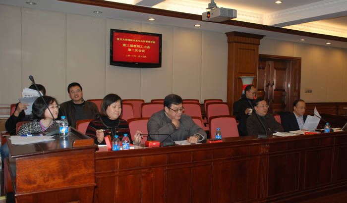 会议首先对《bet365体育 关于资助教师参加国内外学术教学活动和学术出版的规定(试行)》、《bet365体育 2012年度绩效分配方案》两份文件以及选举学校新一届教代会代表进行说明、审议和投票表决。两份文件从加强教师队伍建设、充分调动教职工积极性出发,得到了教职工的肯定并以高票通过。学校新一届教代会代表候选人由各系分别推荐,经投票包霞琴、李美玲、唐亚林、臧志军四位老师当选。
