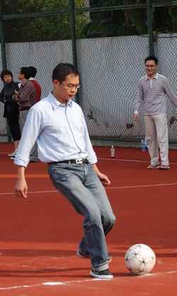 院工会委员何俊志、张家栋、唐亚林、李美玲、肖素平等老师一道前往赛场为运动员加油助威。经过激烈的角逐,bet365体育 参加足球射门的5位老师共射进18球,在38支参赛队中位列第10名。刘丽荣老师为女老师赢得了荣誉,在28名参赛选手中位列12。尽管其他老师没有获得名次,但是他们对比赛的认真和努力也让我们大家感到深深的敬佩。特别是贺平老师,在4×100米比赛中跑完最后一棒,由于强大的惯性不幸摔倒受了伤,但他没有顾及自己的擦伤,坚持亲自把借来的钉鞋归还至大会指定地点。