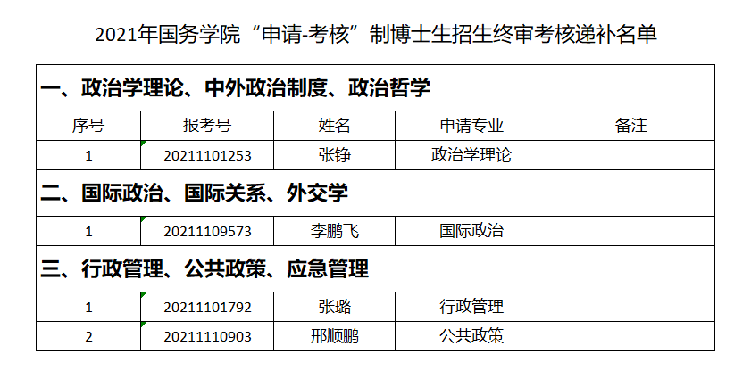 因入围终审考核名单中有考生放弃参加终审,学院按照初审结果顺位递补以下考生进入终审考核。请所有递补进入终审考核的考生发送邮件到[email protected]确认是否参加终审考核,时间为2021年4月13日上午11:30前,邮件格式:“报名号+考生姓名+申请专业+参加/不参加终审考核“。