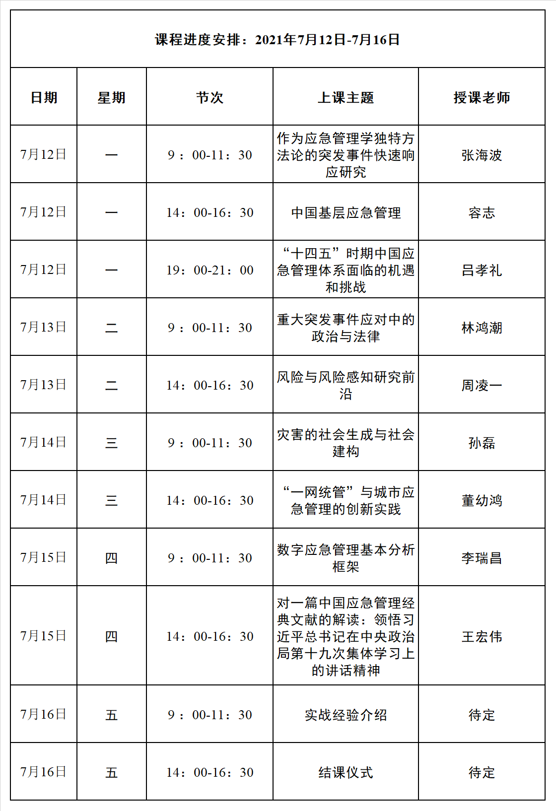 三、课程兼具学术前沿性和实用性。此课程关注应急管理的前沿理论和知识体系,旨在拓展学生的应急管理学术视野,培养学生在应急管理的学术研究能力和实践思考能力。