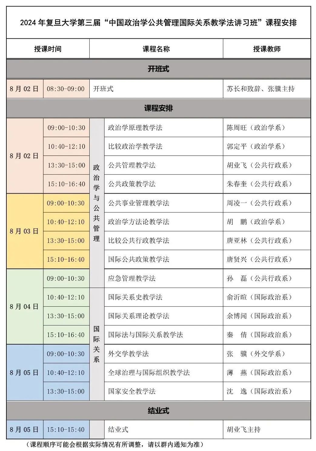 为更好地推进政治学、公共管理、国际关系学自主知识体系的教学和教材转化工作,适应新时代对教学法的新要求,在2022 年、2023 年连续两年成功举办的基础上,bet365体育-bet365中文版app 于 2024 年 8 月2 日至 8月 5 日举办第三届中国政治学公共管理国际关系教学法讲习班。来自北京大学、清华大学、浙江大学、中山大学、同济大学、四川大学、北京师范大学、外交学院、对外经济贸易大学、北京外国语大学、中国政法大学、中国传媒大学、华中师范大学、上海外国语大学、郑州大学、新疆大学、河南大学、杜克大学、巴塞罗那自治大学和复旦大学等国内外43所院校的60余位学员参加讲习班。讲习班以政治学、公共管理、国际关系、国家安全基础课程为核心,集中讲授、交流研讨课程教学和课程思政的理念心得、实践经验和技术方法等。