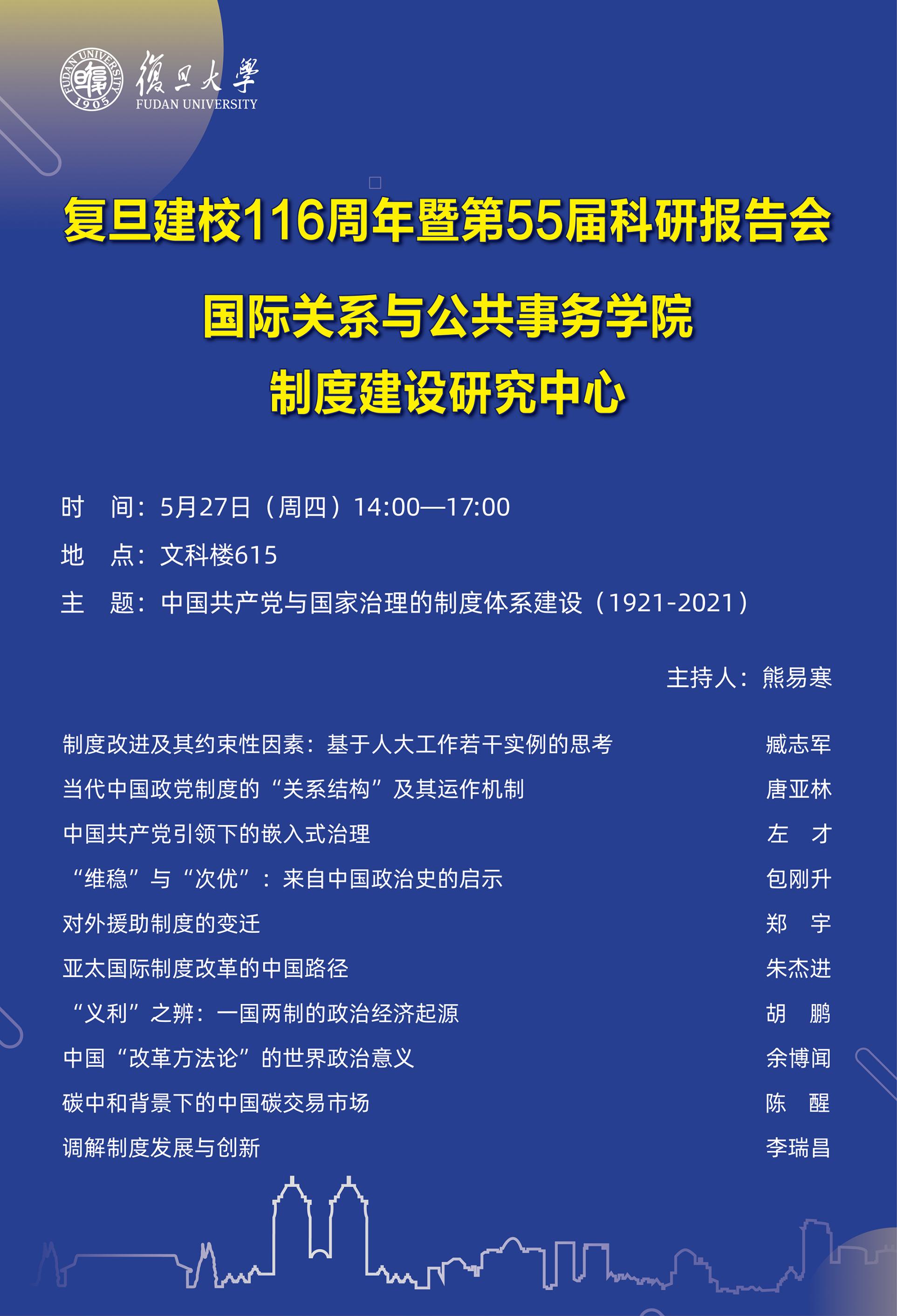 复旦建校116周年暨第55届科研报告会——bet365体育 制度建设研究中心(5月27日)