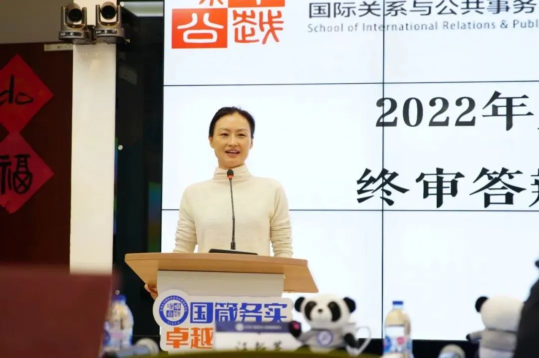 在评审环节,六位评审嘉宾与学子对话,所提问题从学术思考出发,兼具国际视野,落脚于现实关切。顾靖院友在探讨学术话题的同时兼顾对后辈的关心,与同学们讨论“在国际格局变革的背景下,当代中国应当采取怎样的外交策略来发声”,也关心同学如何在学术研究与社会实践中获得平衡等等。评审嘉宾们不仅关注国务青年将在国际舞台上扮演的角色,也引导同学对疫情期间的基层治理提出建议,从专业问题到社会公益,从个人规划到国家发展,嘉宾与学子真诚互动,热烈探讨,答辩人在展示自我的同时,也从朋辈和评委处得到了激励与启发。
