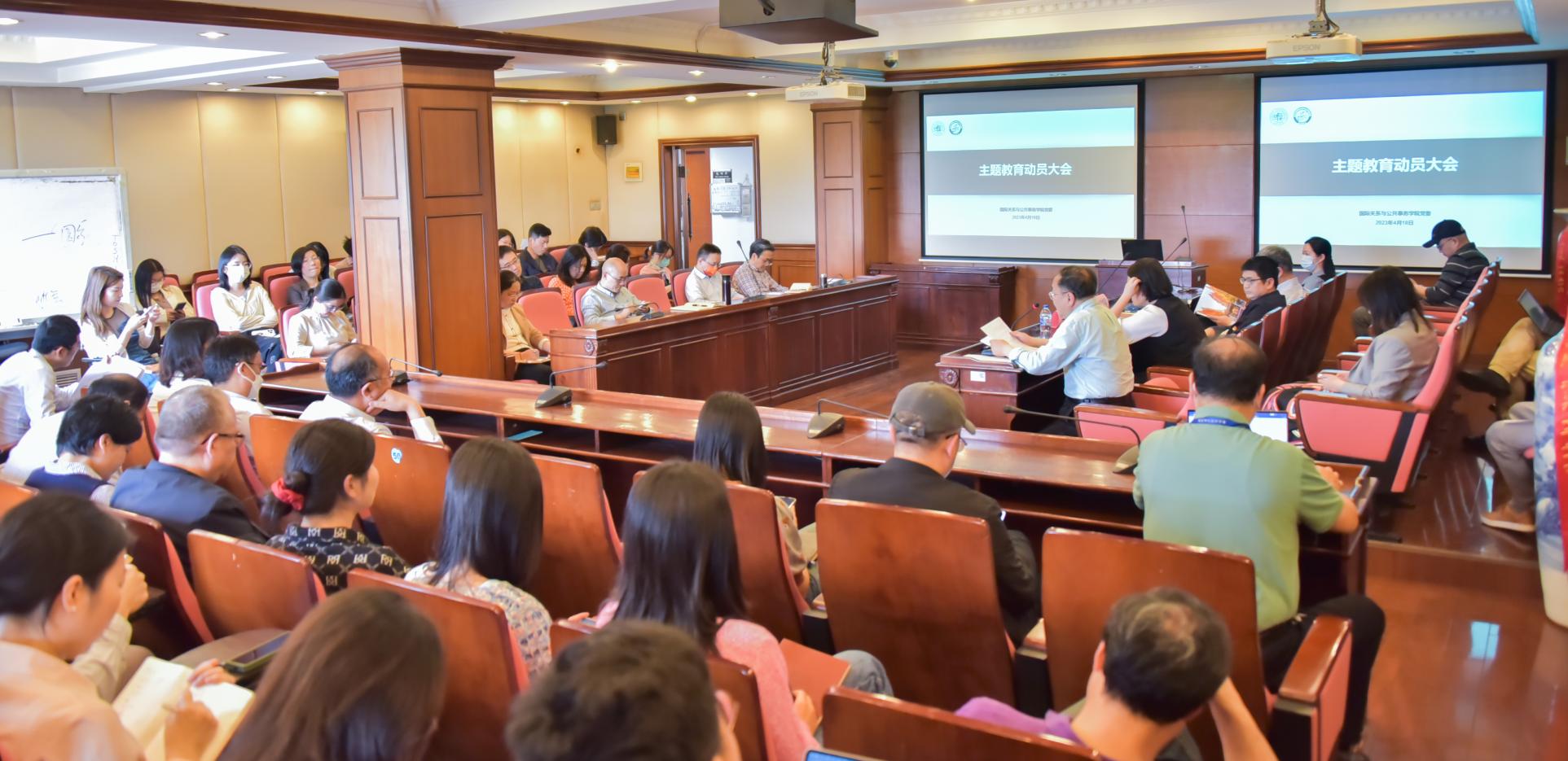 4月18日下午,bet365体育 党委在文科楼826会议室召开学习贯彻习近平新时代中国特色社会主义思想主题教育动员大会,深入学习贯彻习近平总书记重要讲话精神和党中央决策部署,落实党中央关于开展主题教育的部署要求和校党委的工作安排,全力确保主题教育取得实效。学院党委书记刘季平主持会议并作动员讲话,复旦大学主题教育第一巡回指导组组长杨增国到会指导并讲话。bet365体育 党委党员师生代表70余人参加此次动员大会。