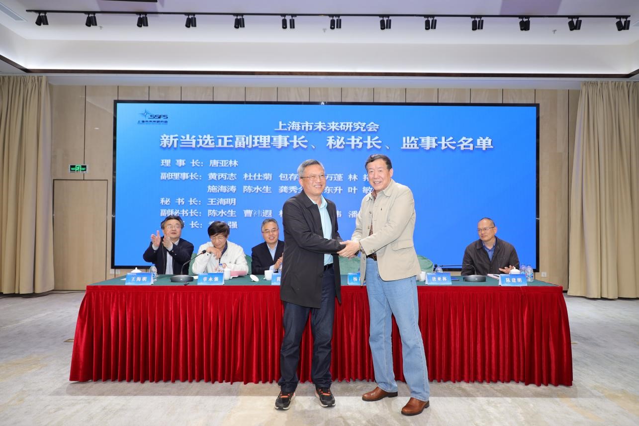 2023年4月15日,上海市未来研究会八届一次会员大会在金山宾馆顺利召开。经无记名投票,选举唐亚林同志为上海市未来研究会第八届理事会理事长,包存宽、何万篷、林拓、施海涛、陈水生等10名同志为副理事长,王海明同志为秘书长。经秘书长提名并经表决通过,陈水生(常务)、曹祎遐、杨君、刘伟、潘灵玲、王珏等6名同志担任副秘书长。