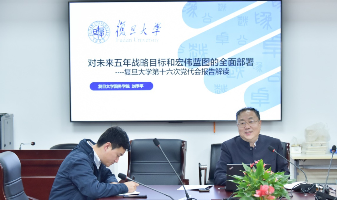 刘季平书记指出,十六次党代会报告高举旗帜、主题鲜明,把握大势、布局长远,鼓舞人心、催人奋进,是指导今后一个时期学校各项工作的纲领性文件。他从“六个新突破”、“五个高”、“五个坚持”来展望未来五年学校高质量发展战略。与一般解读不同的是,刘季平书记结合公文写作的特点和要求对报告的框架、措辞等做了特别详细的解释,让在座的师生不仅能了解党代会报告的内容,更能深入领会党代会精神,积极投身扎根中国知识自主体系建设工作,争当自主创新尖兵。