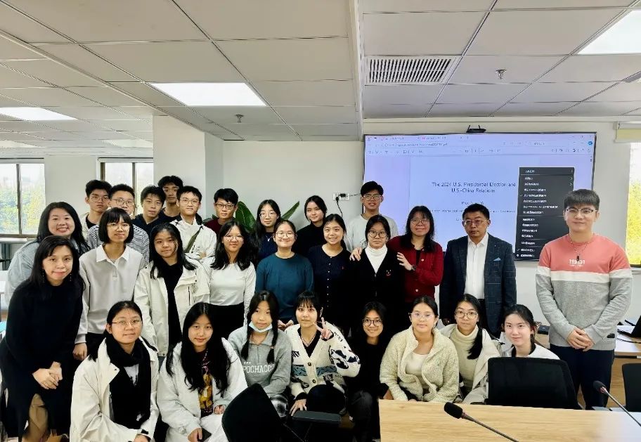 国际政治系教授、复旦大学网络空间国际治理研究基地主任、中美关系专家沈逸教授以“2024年美国大选与中美关系”为题,对大选后中美关系的走向以及具体领域内的发展前景为新加坡中学生进行了深入浅出的专业分析。在提问环节,新方同学们关于今年美国大选两党政策的得失成败展开踊跃的提问,沈老师则从哈里斯边境政策中现实考量的缺乏、民主党政治精英的进步主义与美国底层民众保守主义之间的冲突等角度进行了详细的解答,现场反响热烈。