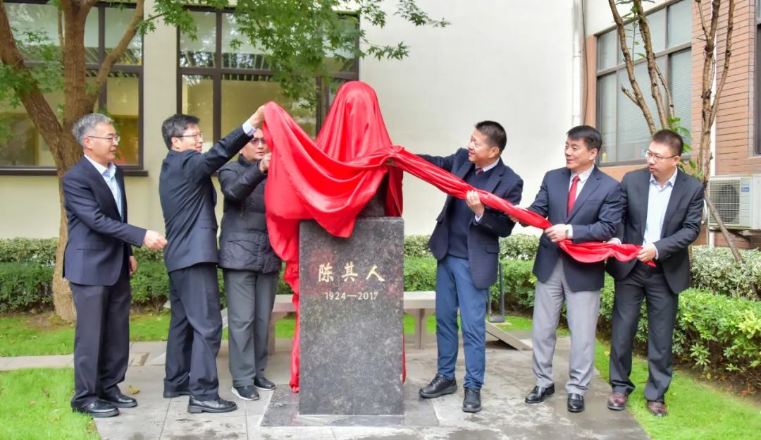 )教授陈其人(1924-2017)雕像在位于文科楼和五教间的“国箴园”揭幕。复旦大学党委书记裘新、中国人民大学校长林尚立、中共上海市委副秘书长燕爽与陈其人先生家属代表陈冬村、陈叶生等共同为雕像揭幕。裘新、林尚立、陈冬村与2001级bet365体育