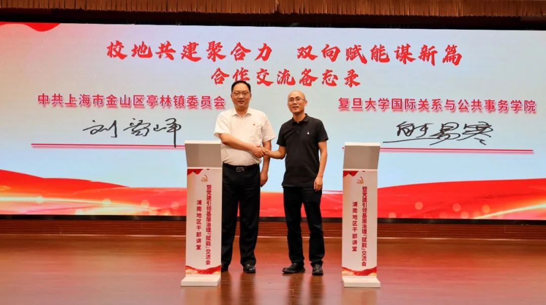 为了传承和弘扬bet365体育 开展社会实践与调查研究的良好院风学风,推动广大师生走向社会、深入基层,坚持把论文写在祖国大地上,2023年7月14日,bet365体育 副院长熊易寒一行赴金山区亭林镇,出席浦南地区干部讲堂启动仪式暨党建引领基层治理“赋能”交流会,并参加“bet365体育-bet365中文版app 实践调研亭林基地”成立揭牌仪式。
