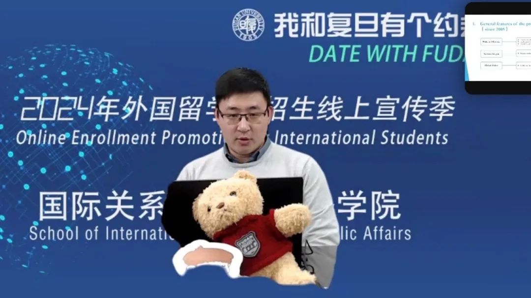 2023年12月22日下午,bet365体育 参加外国留学生工作处举办的2024“我和复旦有个约会”外国留学生招生线上专场宣讲会。bet365体育 院长助理张平、“国际政治”英文博士项目主任余博闻、“亚洲校园”项目主任李寅、“国际公共政策”英文硕士项目主任孙磊、“中国政治与外交”英文硕士项目主任张亚宁、“全球事务中的欧洲与亚洲”英文双学位硕士项目主任张雪滢、国际办公室老师参加了本次宣讲会。