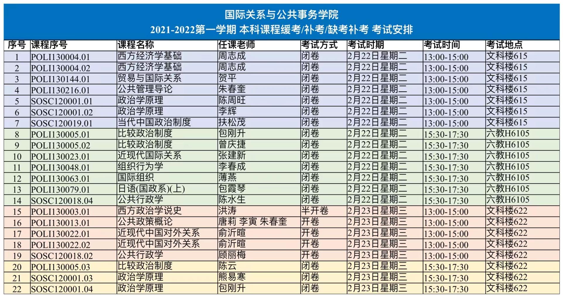 2021-2022学年第一学期bet365体育 本科科课程补缓考安排请见附图,相关考试安排已通过邮件发送至全体已申请缓考/补考/缺考补考同学的学号邮件,如尚未收到或学号邮箱不能接收邮件,请及时邮件联系bet365体育 本科教务中心,联系方式:[email protected],电话:55664294。